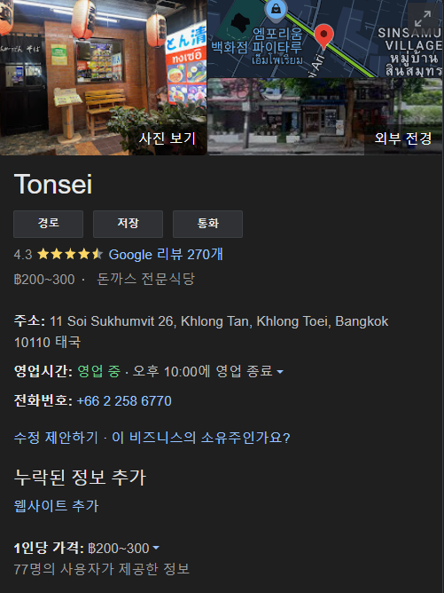 Bangkok Tonsei라고 검색하면 다른 곳이 나오니
