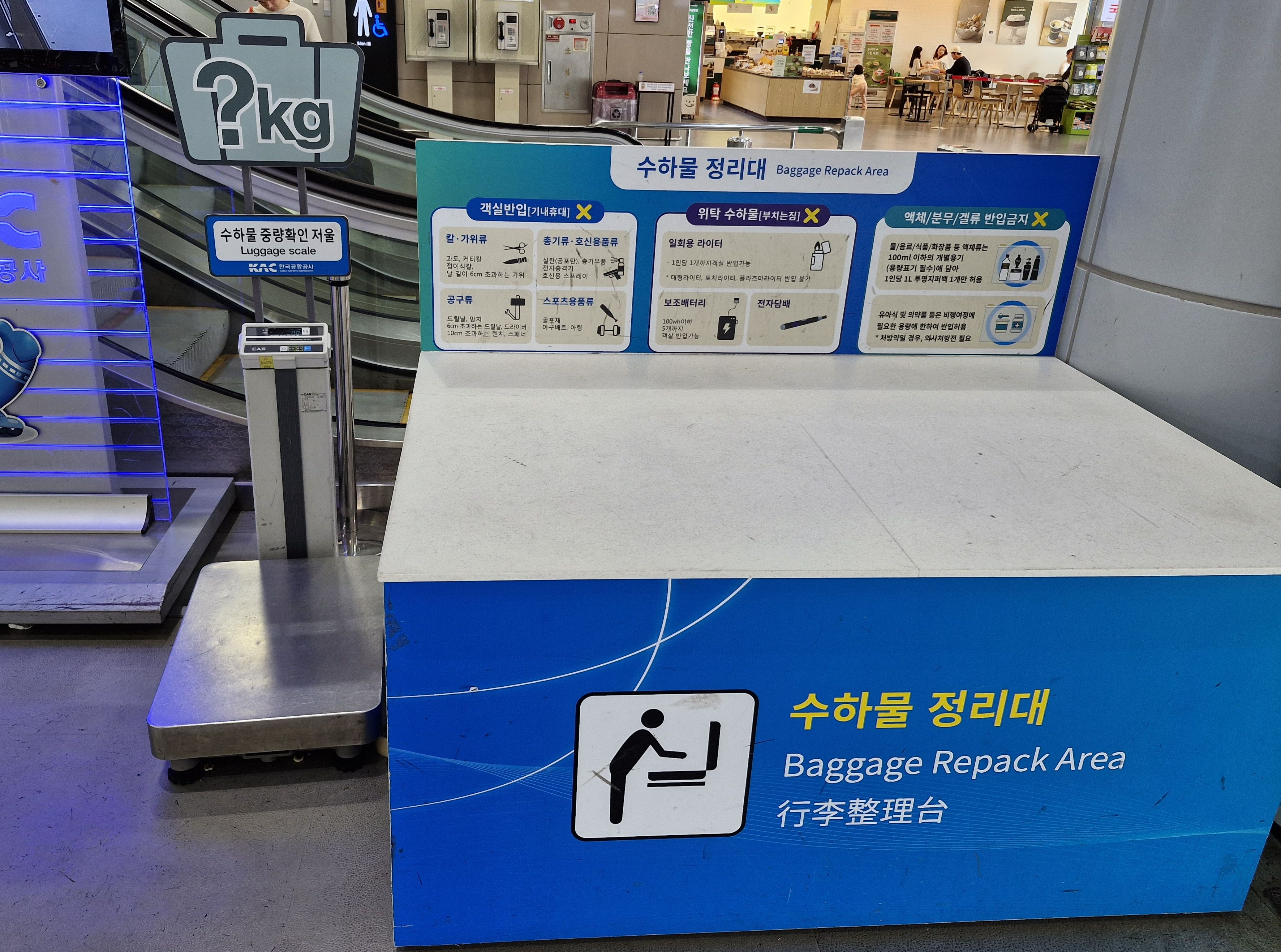 그런데 수하물 정리대의 존재를 모르시는 분들이 많은지 바닥에 주저앉아 짐을 정리하시는 분들이 많이 보이더라