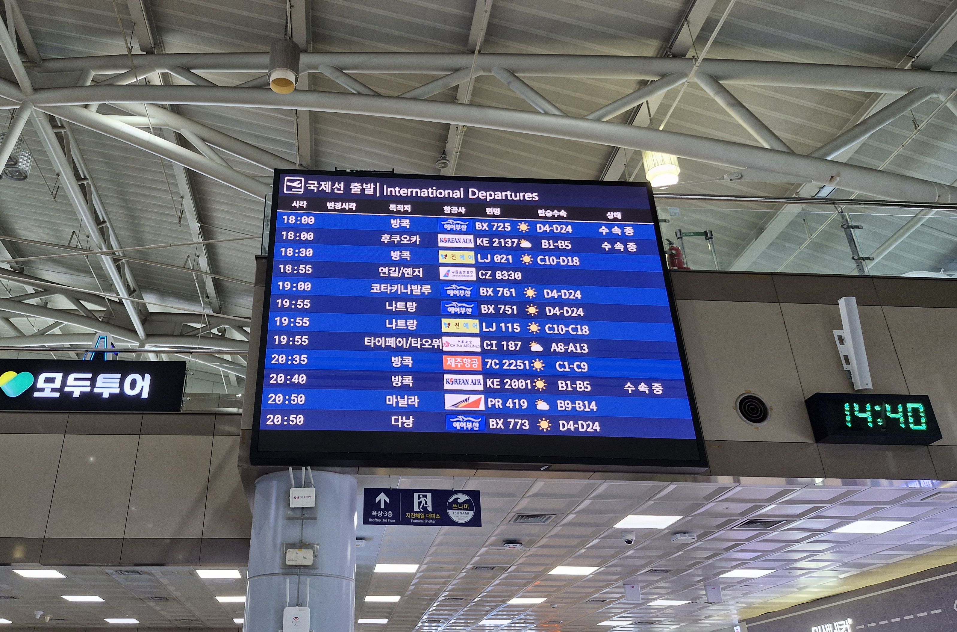 그런데 이따 출국 수속할 때 진에어 카운터에서 재니까 처음 쟀던 무게인 14.6kg가 나오더라