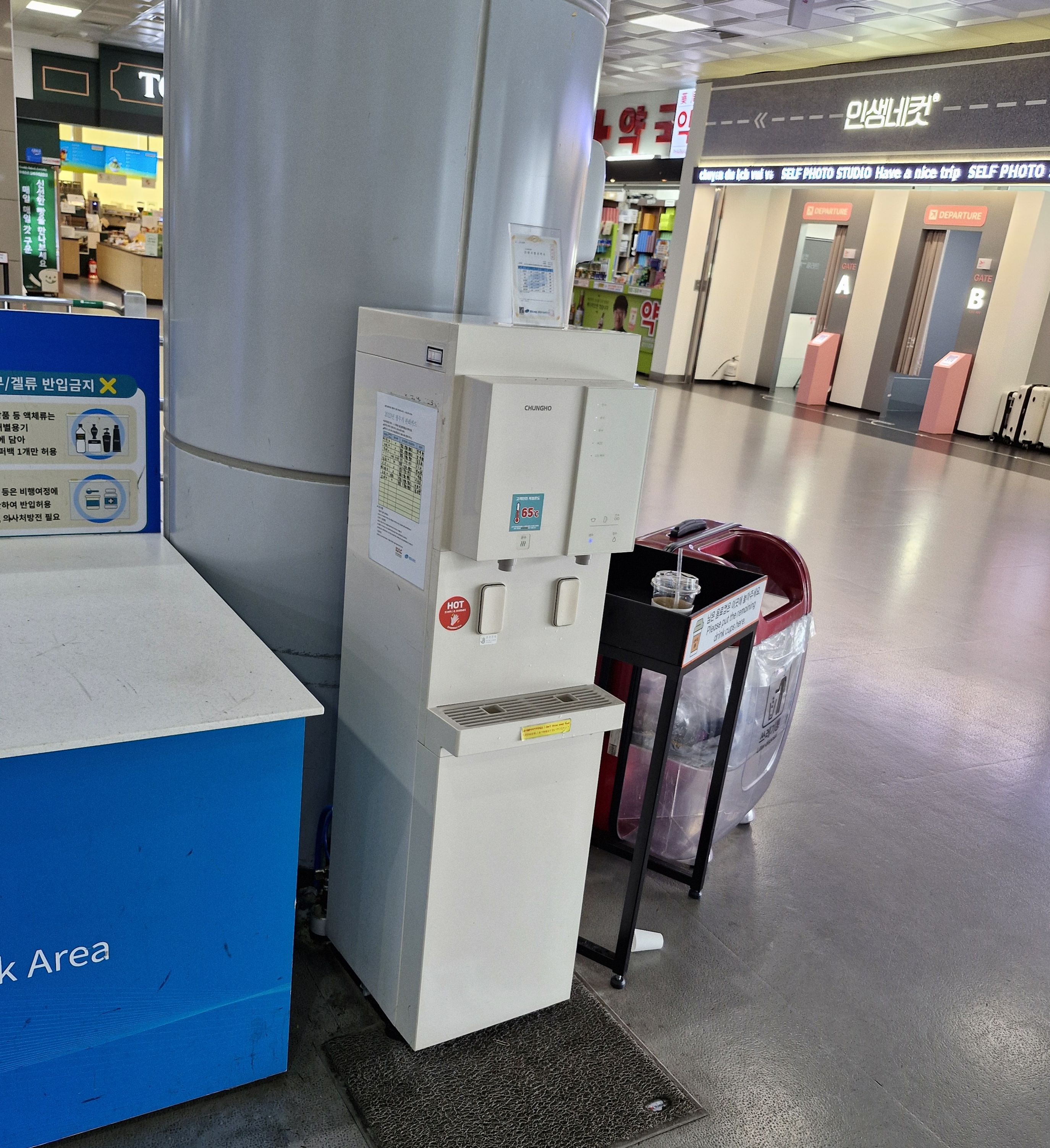 참고로 1게이트 저울 주변에는 정수기도 있고 약국, 편의점, 화장실 그리고 인생 네 컷까지 있다
