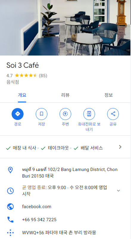 넓은 홀 같은 공간이 있고 안쪽으론 야외 테이블 그리고 후기를 보니 에어컨룸도 있다고 한다(진작 찾아볼 걸...)