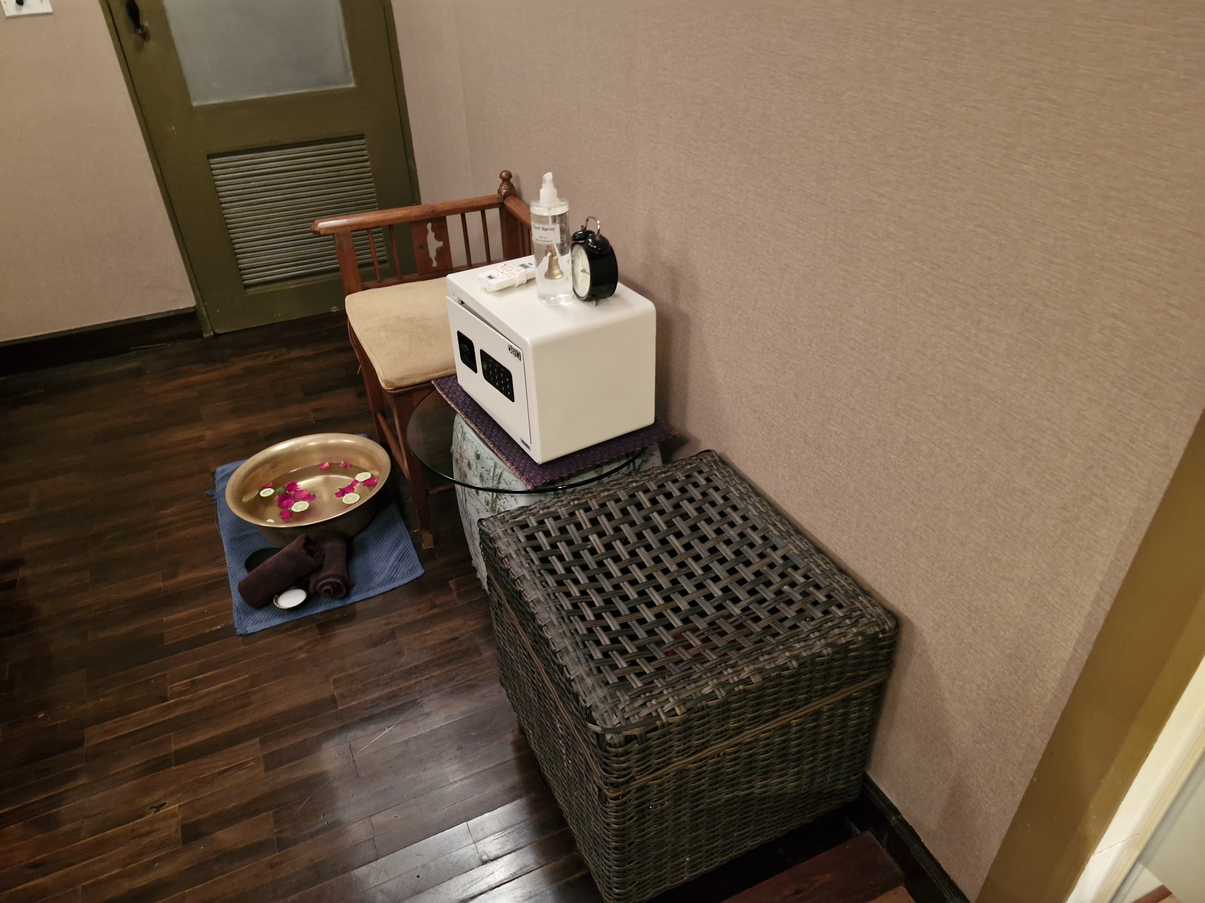 마사지 전 옷을 갈아입을 때나 마사지 후 샤워를 하고 머리를 말리고 화장실을 다녀오는 등