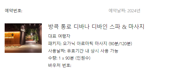 클룩에서 예약을 완료하면 디바나 디바인 스파 측에서 확인 메일과 바우처를 보내줍니다