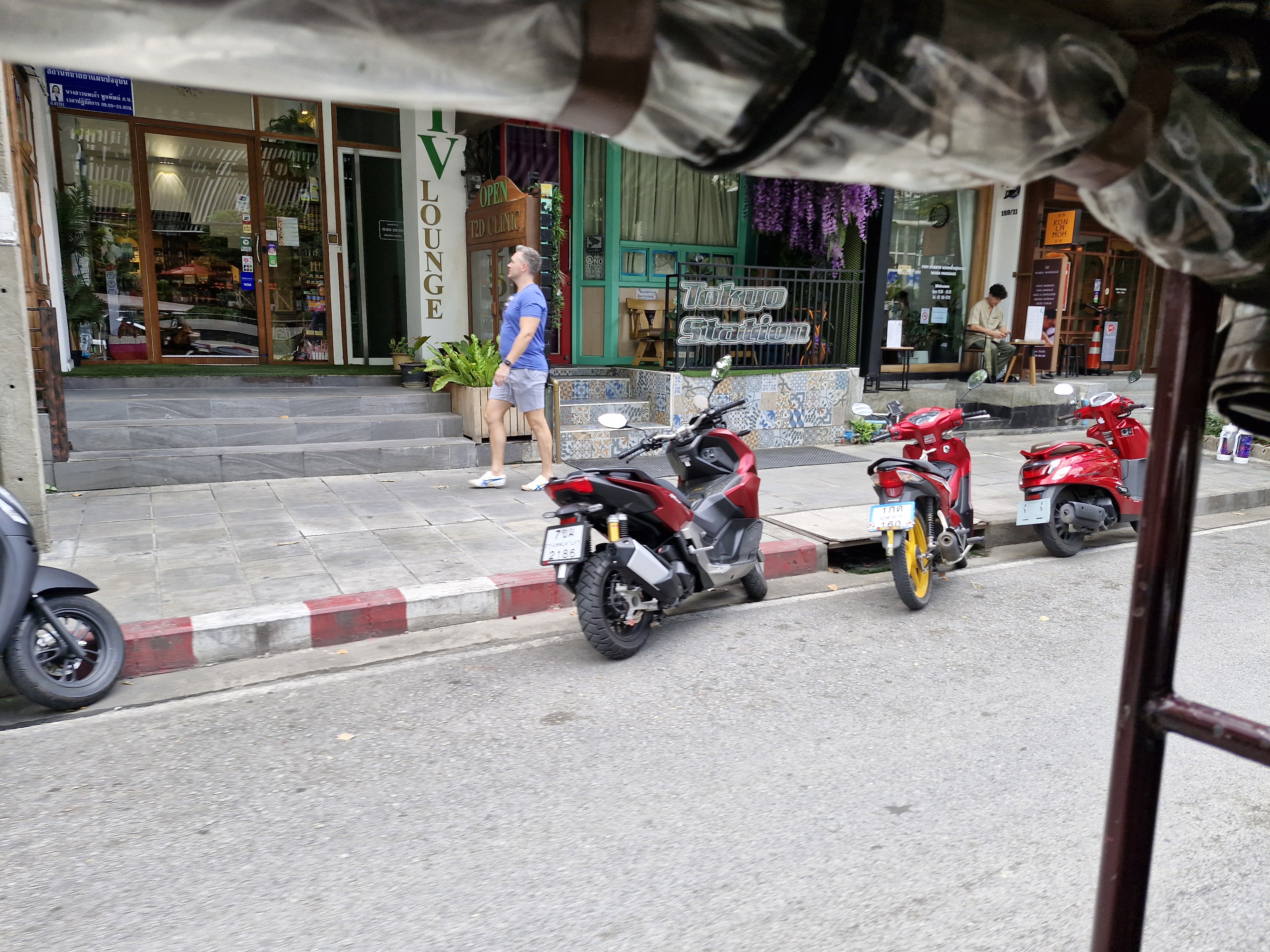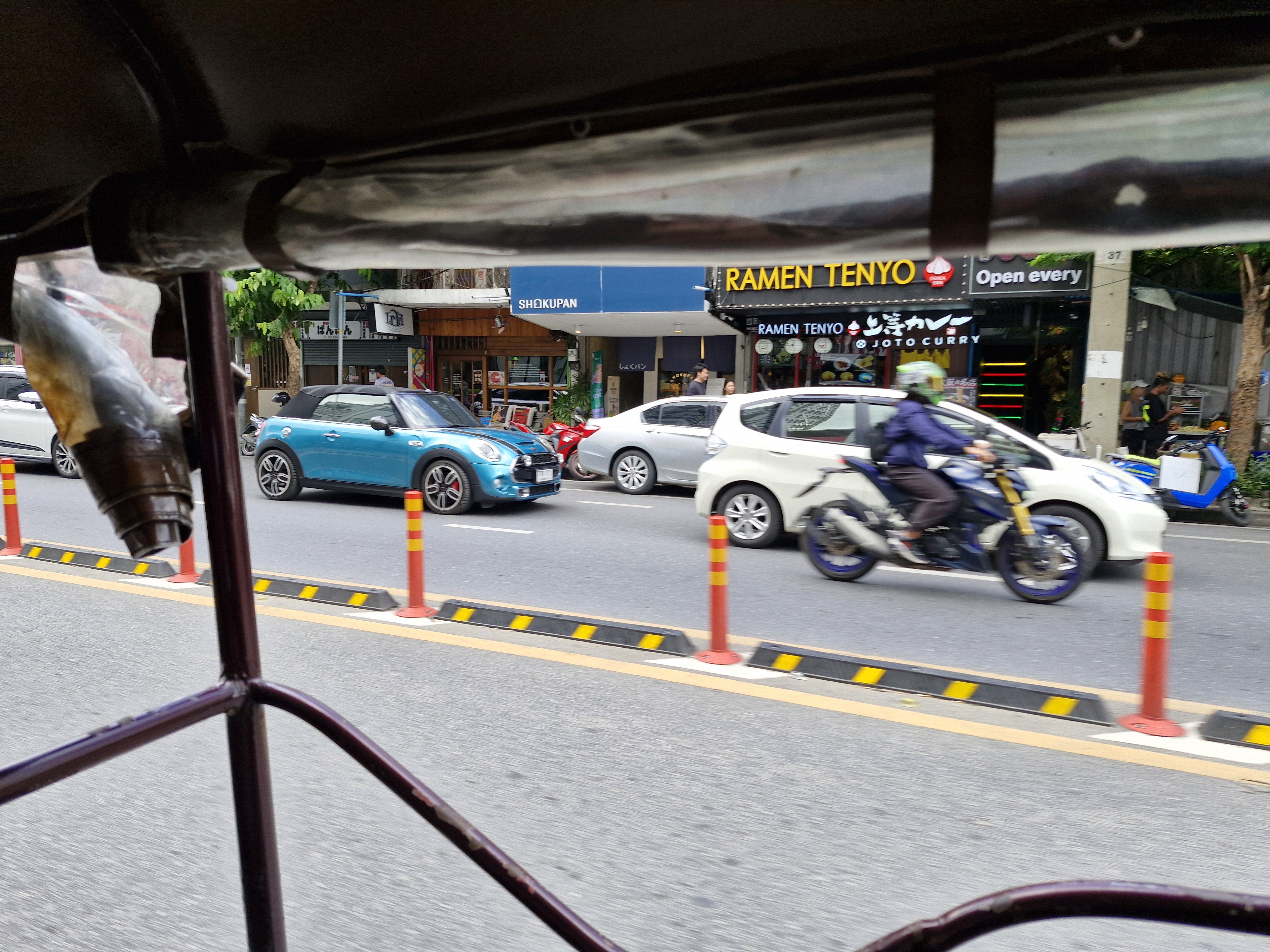 툭툭 픽업 서비스를 요청하면 약속한 시간에 통로역 근처 망고 맛집 앞에서 툭툭이 대기하고 있습니다