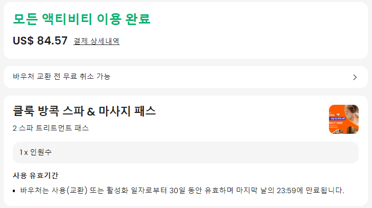 저는 클룩에서 방콕의 스파와 마사지샵 두 곳을 이용할 수 있는 패스 상품을 이용했어요